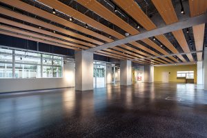 校舎の中心にある学校の最も特徴的な空間「ステップラウンジ」は、ステップ状の4層吹き抜け空間で構成され、校舎内が一望でき、生徒が共に刺激しあい、学びあう空間となっている。この空間を可能にしたのが、フルPCa構造で、ステップラウンジは最大24mの大スパンを無柱空間としており、さらに避難安全検証法により竪穴区画を排除し、常に開放的な吹き抜けとしている。外観は、PCaの柱と梁でシャープなグリッドによる整然さと、奥行きにより重厚感を現わしている。